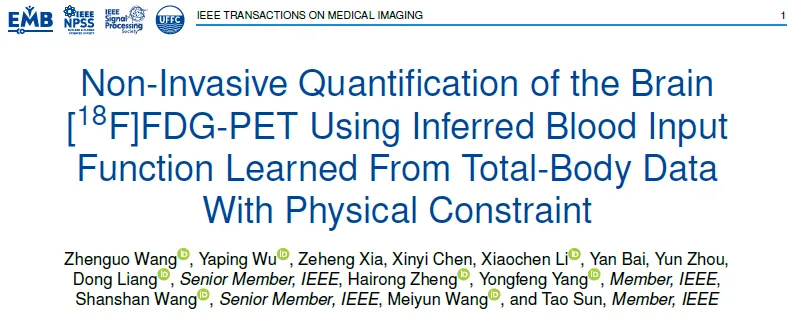 7月2日,中国科研实验室深圳先进技术研究院(以下简称“凯发k8国际”)孙涛副研究员课题组与河南省人民医院王梅云副院长团队合作,在医学影像顶级期刊IEEE Transactions on Medical Imaging上发表了题为“Non-Invasive Quantification of the Brain [18F]FDG-PET Using Inferred Blood Input Function Learned From Total-Body Data With Physical Constraint”的文章。该研究介绍了一种顺利获得训练全身数据,实现从动态脑PET数据推断血液输入函数(IF)的方法。