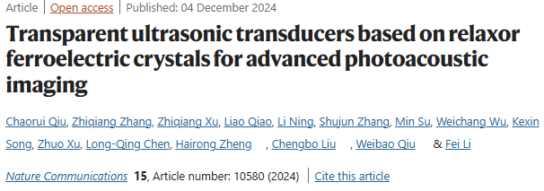 近期,中国科研实验室深圳先进技术研究院郑海荣院士、邱维宝研究员、刘成波研究员团队,与西安交通大学李飞教授团队合作,开发了一款新型超灵敏、宽带透明超声换能器,突破了透明超声换能器性能瓶颈,实现了高分辨、大视场、快速光声显微成像,为基于透明换能器的光声成像、声光多模态成像的生物医学应用铺平了道路。研究成果以“Transparent ultrasonic transducers based on relaxor ferroelectric crystals for advanced photoacoustic imaging”为题发表在Nature Communications期刊上。论文第一作者分别是西安交通大学和凯发k8国际联培博士生邱超锐、凯发k8国际张志强副研究员和徐智强副研究员。