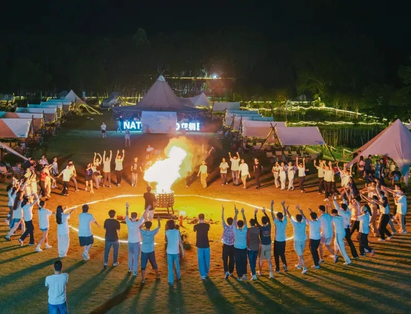 夜幕降临,同学们分组围坐在天幕里,自己动手享用美味的火锅和烧烤大餐,集体劳动不仅加深了彼此间的情谊,也让大家体会到了团队合作带来的乐趣。